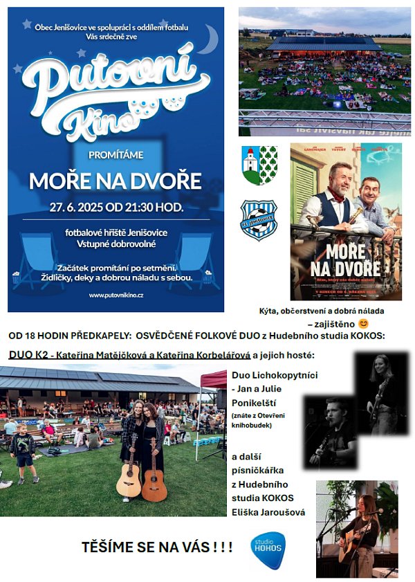 Nezapomeňte již DNES Vás čeká Putovní kino a přivítání léta s Obcí Jenišovice a oddílem fotbalu SK JENIŠOVICE, program začíná již v 18 hodin...posledn...